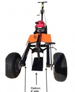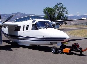 | The 6-H model AirTug® is the tug of choice for those who need to lower the tail to enter a hangar or are working with a lip 3/4″ or greater. The nose-wheel is loaded onto a platform which can then be raised by a hydraulic jack up as much as needed to a maximum of roughly 7”, thus lowering the tail by approximately double this amount. Additionally, it is easy to use because of its’ unique “Twist Grip Control” system utilizing a hydrostatic transmission and a 6 HP fixed speed gasoline engine. We ensure your safety with our “Return to Brake” feature that prevents any unintentional movement of the plane when the twist grip is released. There is no metal to metal contact, no gears to shift and no jerky clutching systems to quickly wear out. Finally, its’ pinpoint handling allows the operator to pivot as tight as desired as a result of the differential transmission. All of these features simply make this aircraft tug the best in the industry! |